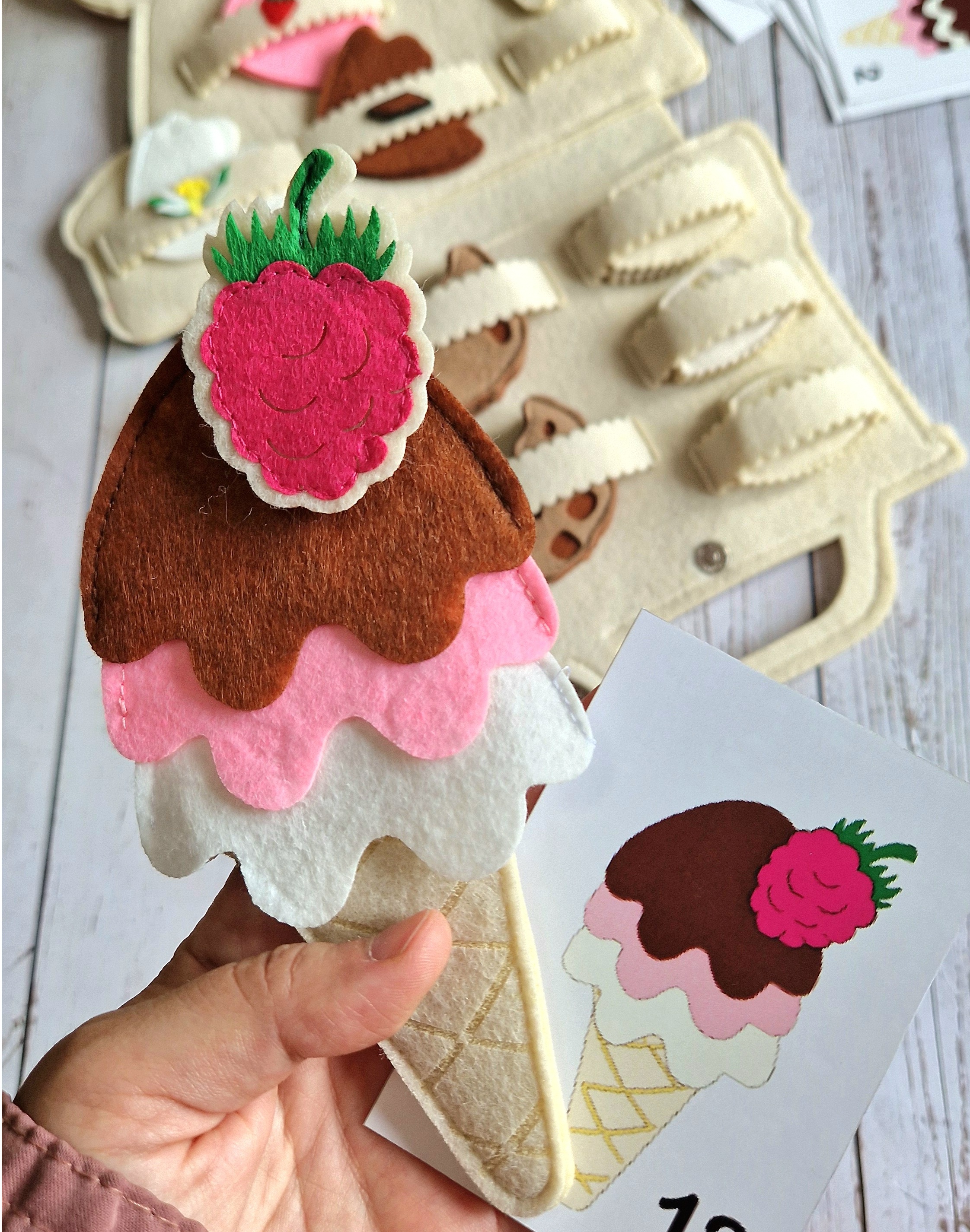 Naš Ice Cream Truck didaktički set nudi višestruke benefite za razvoj vašeg djeteta. Djeca mogu kreirati preko 1000 različitih kombinacija sladoleda. Pomaže u razvoju fine motorike, a 12 kartica sa zadacima omogućava vježbanje serijacije i prepoznavanje uzoraka. Uz to, sparivanje muffina sa tačnim brojem čokoladnih komadića i brojeva potiče logičko razmišljanje. Naš brend je poznat po jedinstvenim i inovativnim igračkama koje se ne mogu naći nigdje drugo na tržištu. Svaka naša igračka pažljivo je dizajnirana kako bi pružila maksimalnu vrijednost u igri i učenju.